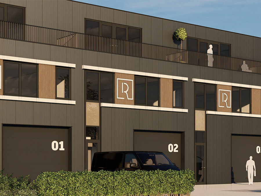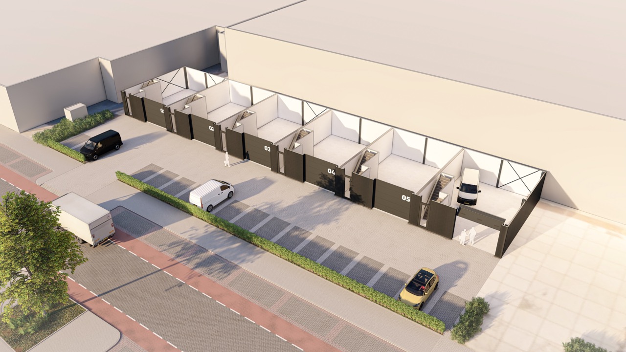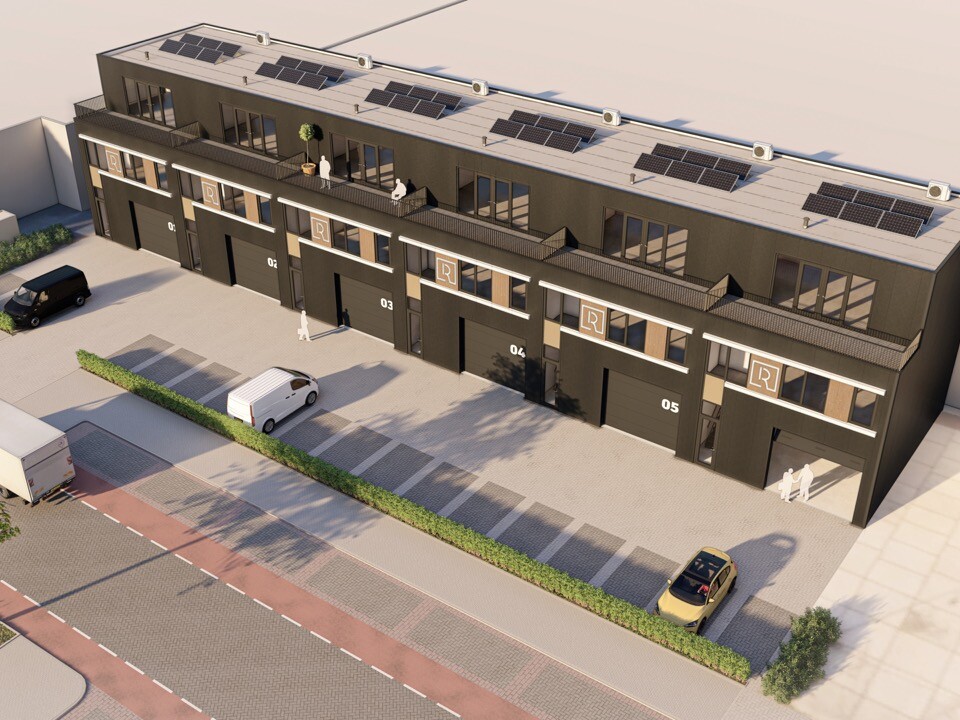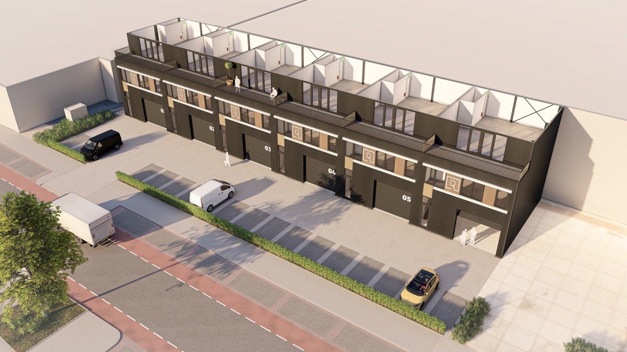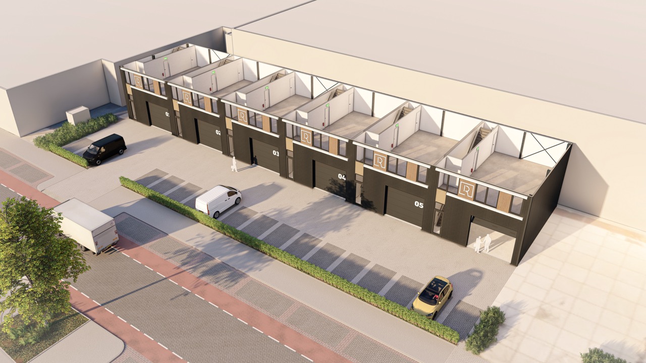 6 bedrijfsunits met elk ruime bedrijfsruimte, kantoorruimte, dakterras en ruime parkeergelegenheid