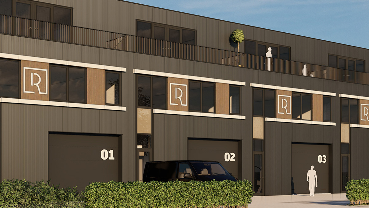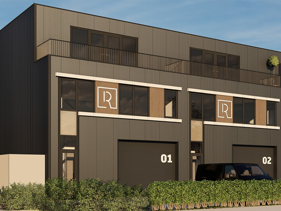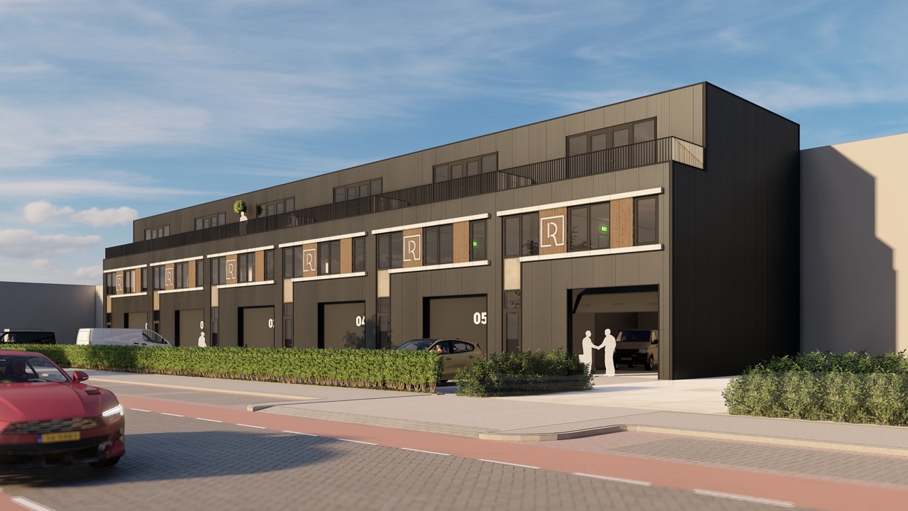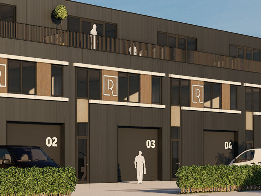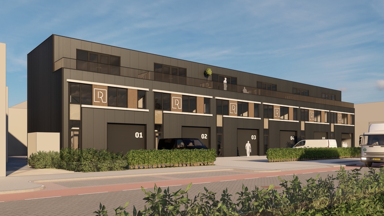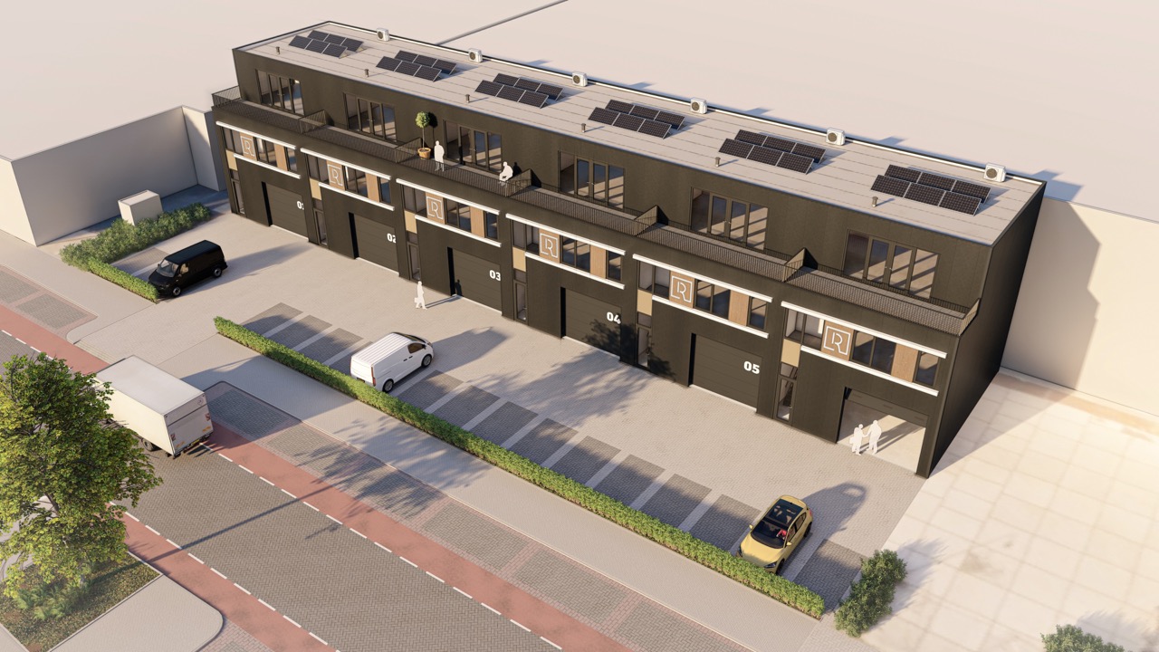 6 bedrijfsunits met elk ruime bedrijfsruimte, kantoorruimte, dakterras en ruime parkeergelegenheid